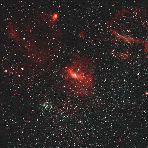 NGC 7635, Bubble Nebula in Cassiopeia; M52 in lower left hand corner